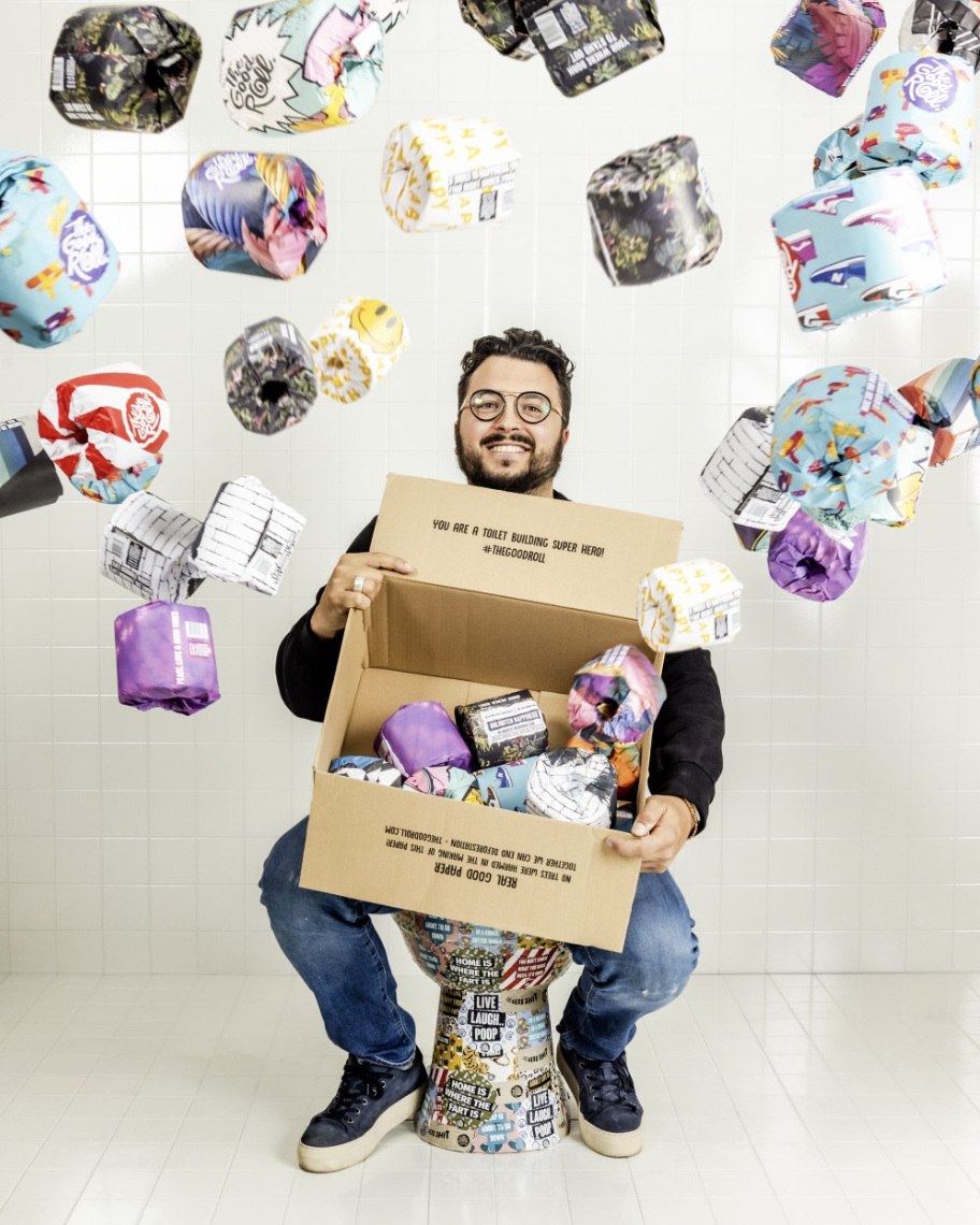 Everything started from a mutual frustration. There are 2.3 billion people worldwide who do not have access to safe and clean toilets, which is 1/3 of the world's population. At the same time, 27,000 trees are cut down every day for the production of toilet paper. These facts inspired our alumnus Melle Schellekens (who graduated from HTH in 2009) along with his partners Sander de Klerk and Faisal Ahmed to develop The Good Roll in 2018; a 100% tree-friendly toilet roll. The Good Roll donates 50% of its net profit to building toilets in Africa and is made of 100% European recycled paper, without chlorine, colorants, or fragrances.