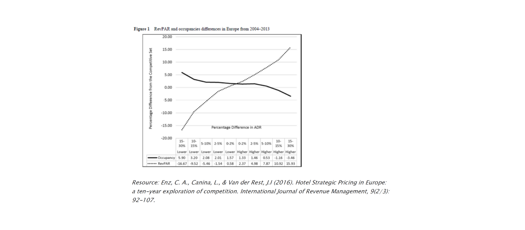 The first graph shows the results of important research conducted by Cathy Enz (Cornell), Linda Canina (Cornell), and Jean-Pierre van der Rest (Hotelschool The Hague) a few years ago. It shows that the 4000 hotels in Europe who, in the period 2004-2013 had a higher average room rate (ADR) than their direct local market competitors, indeed had a lower occupancy rate but yet a higher RevPAR. Lowering average daily room rates, definitely under current economic conditions and regardless of whether the hotel is independent or part of a chain of hotels, is not profitable. Further research has also confirmed that most European hotel markets have an inelastic price elasticity; there is factually proven room for rate increase.
