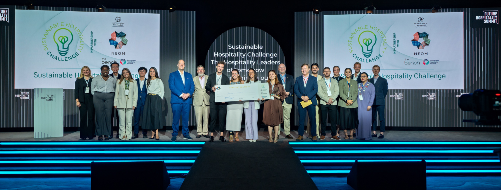The SHC is a Hotelschool The Hague initiative that aims to enhance the evolution of sustainable hospitality. During this international student competition in which teams from all over the world take on the challenge of designing a hospitality concept that presents solutions that embrace sustainability and cater to the evolving needs of modern travelers. Established as a platform that challenges innovative hospitality approaches for the last nine years, SHC has evolved into a global knowledge-based initiative. During its years of activity, SHC has collaborated with some of the most reputable CEOs of the Hospitality Industry, who, from competition to competition, were asked to judge the project proposals. SHC, owned by Hotelschool The Hague, is sponsored by NEOM and official partnered with The Bench and Sustainable Hospitality Alliance.