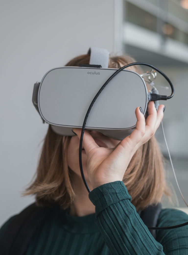 VR involves full immersion with most senses being blocked from the outside world and uses audio and visual stimuli through a headset to create the illusion of being present in another environment. In AR, the real world remains the common structure over which digital information is overlayed for specific functionalities, e.g. Google Maps Live View or Snapchat filters.