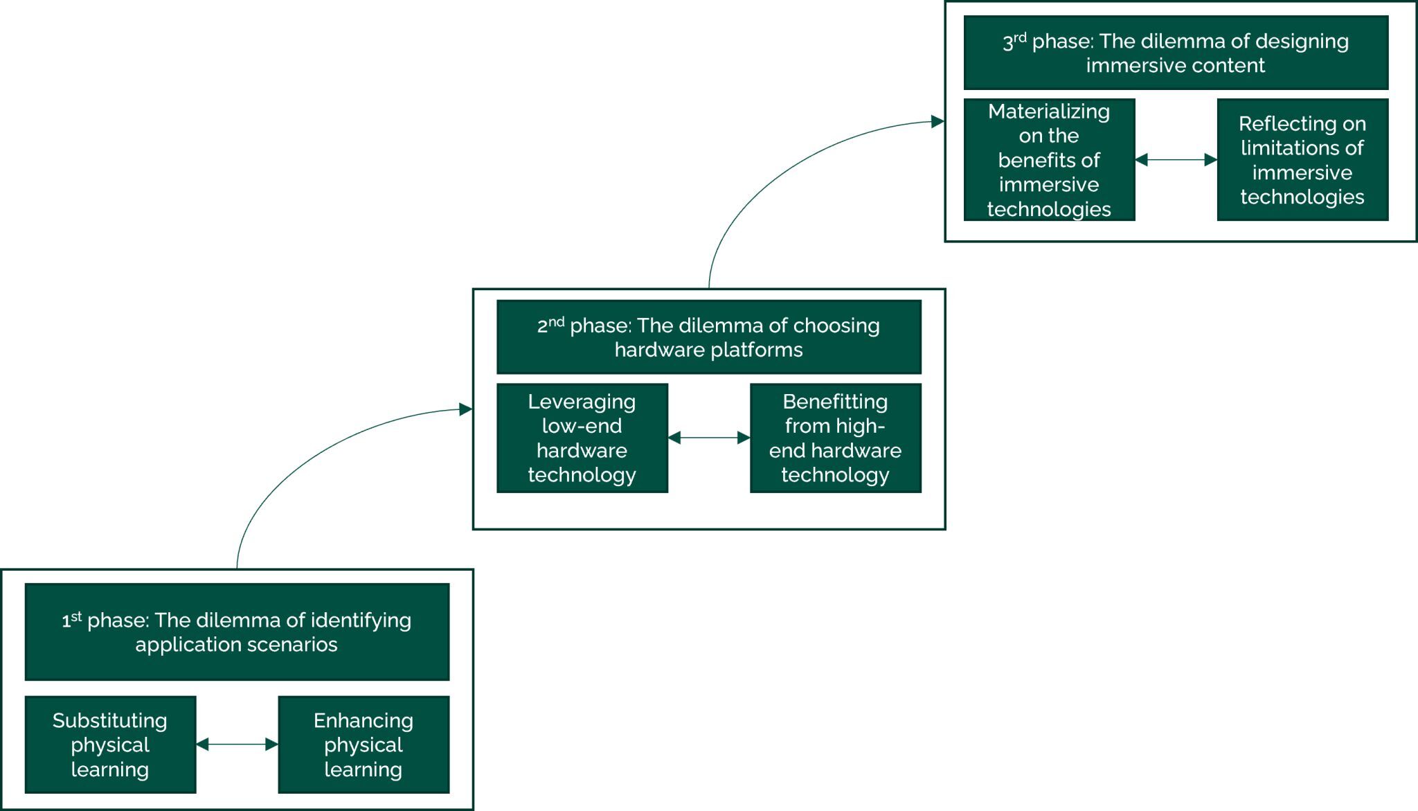 The authors of this study, including Alexander Lennart Schmidt , Praneschen Govender, and colleagues, propose a three-stage framework for developing low-end immersive learning content in hospitality education. This framework outlines three key decision-making dilemmas for educators and developers: