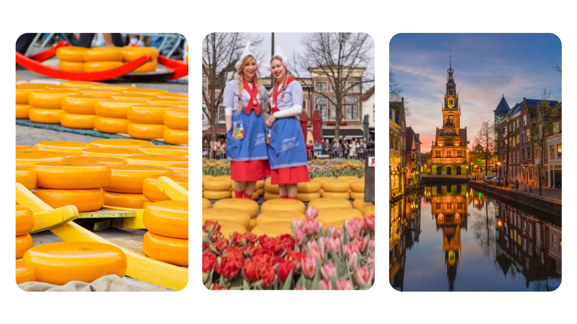 Alkmaar is most famous for its cheese market. The Alkmaar Cheese Market runs between the end of March and September on Friday mornings. The Dutch cheese museum showcases the history of cheese, while the Natioanaal Biermuseum has an exhibition on the history of beer and of course, also serves local beers!
